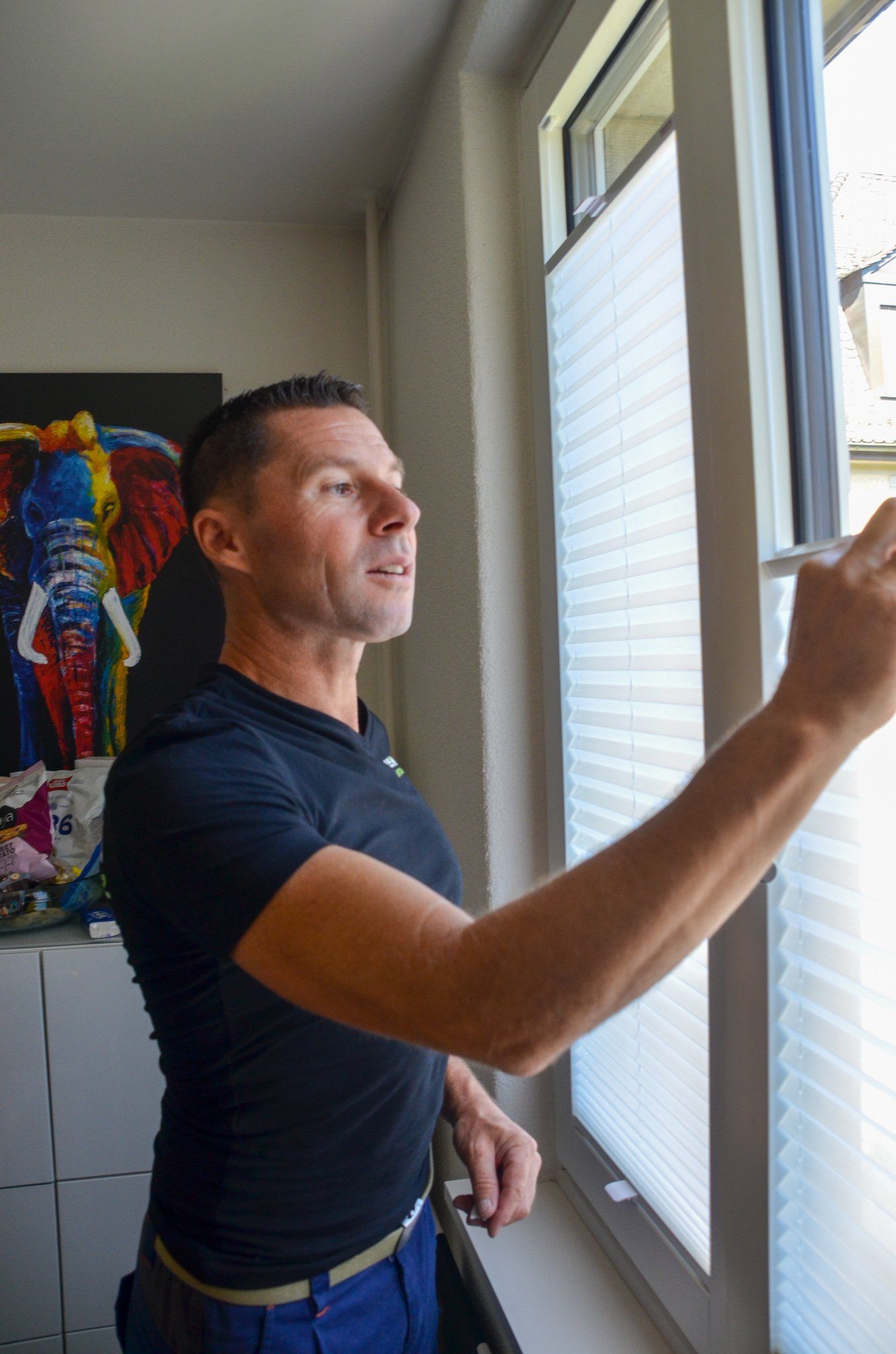 Zwei schöne Insektenschutz Plissee montiert, das eine perfekt, auf die Farbe vom Fensterahmen angepasst und genau in der grösse der Mauerleibung am Fensterrahmen angeklebt.